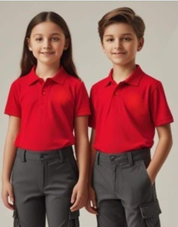2025-2026 Eğitim Öğretim Yılında okulumuzda uygulanacak okul kıyafeti temsili görselleri Koyu gri renkte pantolon ve kırmızı renkte yakalı t-shirt olmak üzere aşağıda belirtilmiştir. Herhangi bir işletme veya marka ile anlaşmamız yoktur. Velilerimiz istediği yerden temin edebilir.